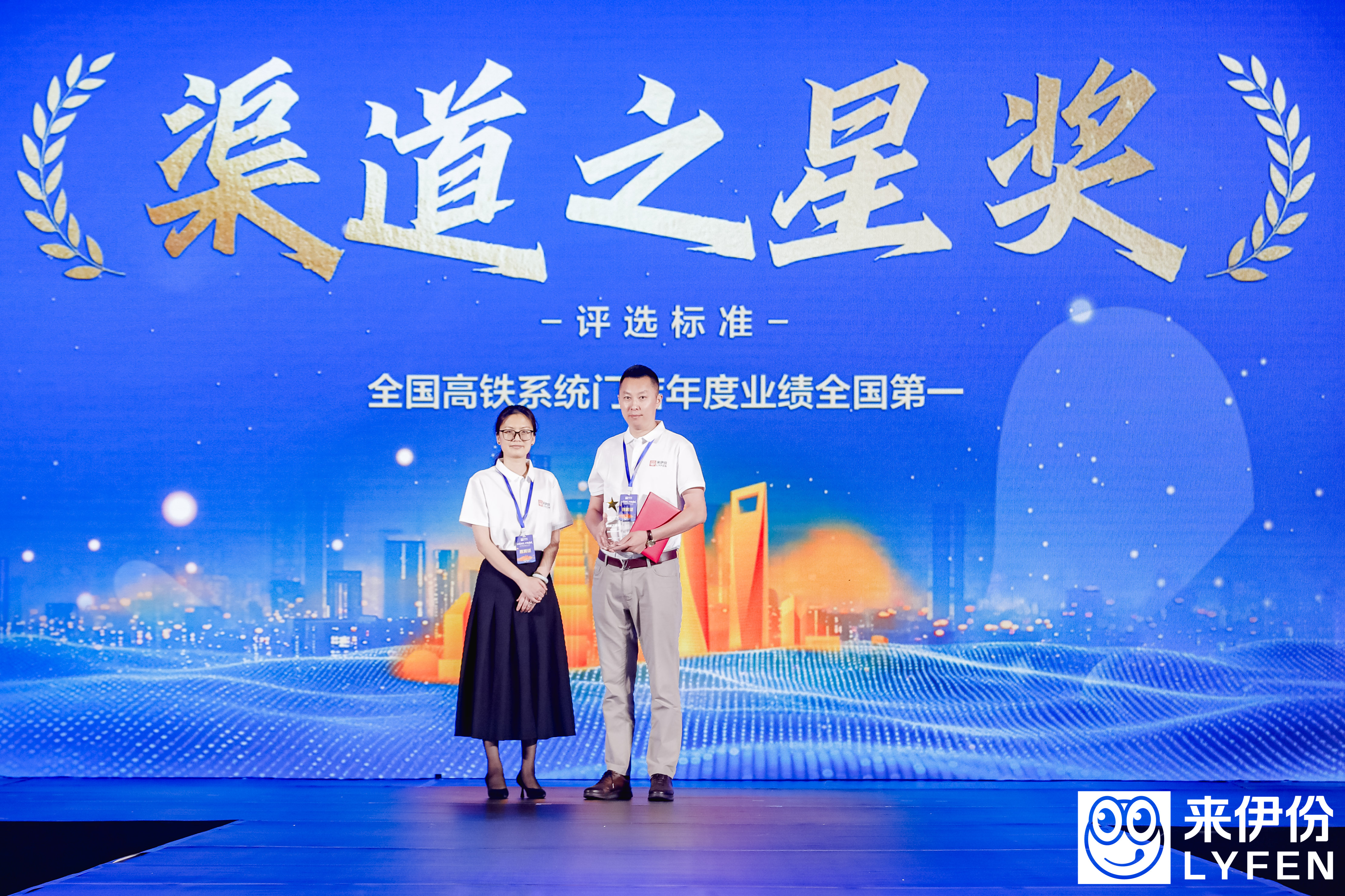 2023年全国高铁系统门店年度业绩全国第一,年度销售额达到1678万。作为高铁渠道加盟商,第二次获得“渠道之星”殊荣的吴江波依旧激动不已,感谢来伊份品牌对门店的赋能的同时,也感谢山东来伊份团队的鼎力支持。