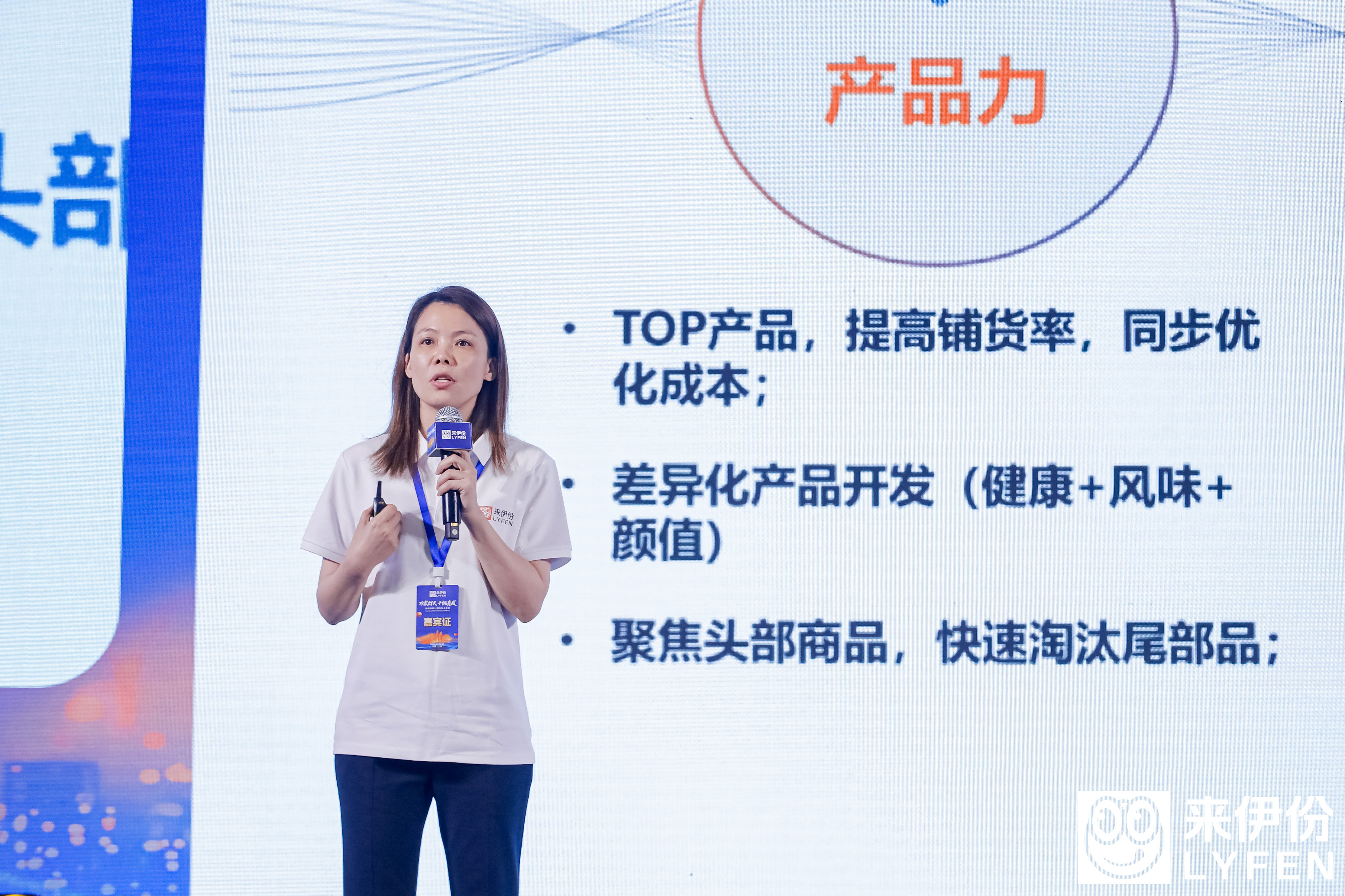 门店的核心是业绩,而实现业绩的核心,则是对产品的抓手。针对产品,来伊份集团副总裁兼供应链管理总裁张丽华表示“来伊份供应链做的不仅仅是追求数量,更关注质量,以用户为导向开发市场能接受的新品,是我们正在进行变革以及通过系统化实现的方向。”