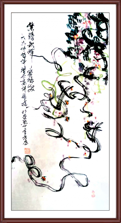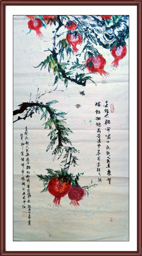 虎桥先生每每作画之前都要焚香一枝,虔诚念佛,净化心灵,渐入美妙之境,渐入色界定和无色界定,以作品臻纯青完美,灵性突出,使人看了驻足良久,不忍离去,象磁性的吸铁石把观众牢牢的吸住,令观众流连忘返,鬼斧神工,出神入化的美妙意境。曾有一女子结婚多年,未曾怀孕,欢喜与画结缘“牡丹石榴图”题词:大富大贵多子孙。结果在一个月内,其女子有了身孕,神奇啊,真的妙不可言啊!太神奇啦!