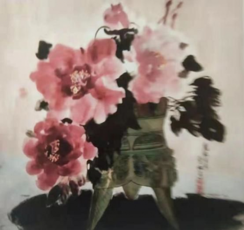 牡丹与鼎:鲜红的牡丹与古典文化结合之美。