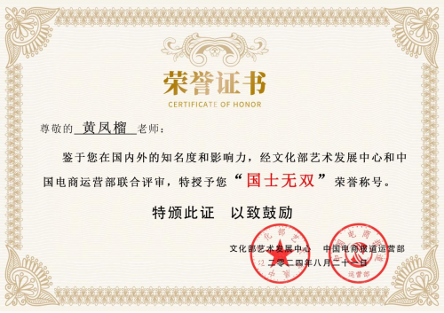 黄凤榴 , 离休干部,高级职称,世界文联终身名誉主席,中国人才研究会艺术家学部一级国画委员,中国日史编诗书画会理事,台湾海峡两岸文化交流协会副主席,香港杂志社永久艺术顾问兼学术委员,中国工艺美术会员,中国科学家协会会员,国际羲之书画院终身荣誉教授,国家一级美术师。