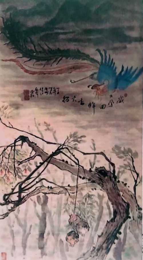 其花鸟画则充满了生机与活力。花朵绽放的姿态、鸟儿灵动的身姿,都被他刻画得栩栩如生。他善于捕捉瞬间的美,将花卉的娇艳、鸟儿的活泼展现得淋漓尽致。在色彩的运用上,他大胆而富有创意,鲜艳的色彩相互交融,形成了强烈的视觉冲击,却又不失和谐与美感。