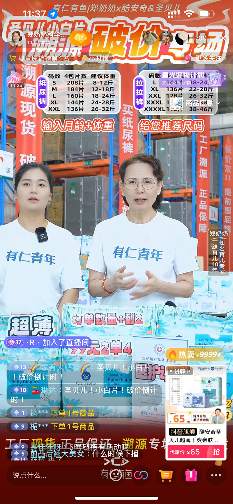 10月9日,母婴品牌酷安奇开启溯源专场,并邀请抖音母婴垂类作者@郑奶奶科学育儿 驻场,向新老粉丝们展示品牌雄厚的工厂制造实力和专业用心的形象理念,配合优质、充足的货盘,冲刺大促爆发。