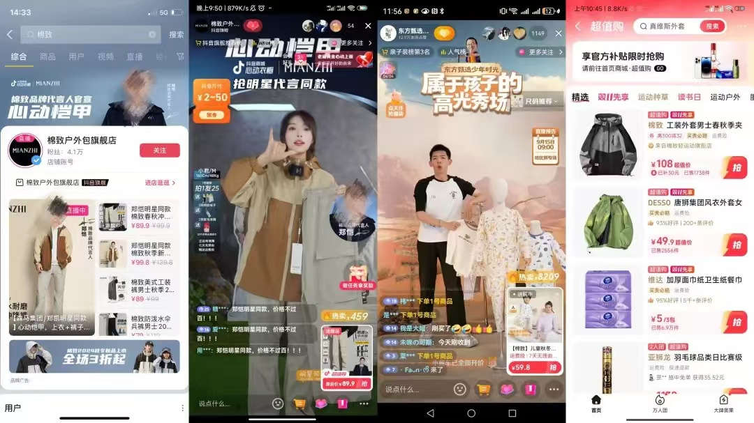 而好的货品、好的价格,也需要搭配好的引流筹备工作。棉致品牌团队通过新东方大号及垂类账号的多个专场排期、东方甄选及少年时光、彩虹夫妇以爆款撬动活动期持续混场带货,以行业优秀货品机制深度绑定达人账号带货,确保持续的品牌曝光。实际上,自 8 月开始,棉致就在完善秋冬款式的链接,配合垂类达人直播间,为后续核心产品的商品卡爆发打好地基。