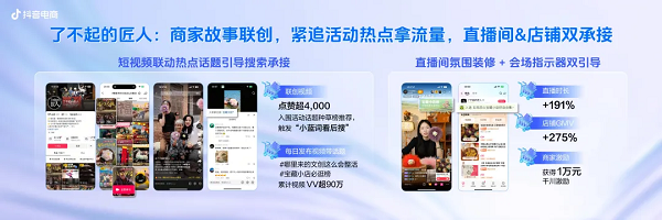 活动期间,@了不起的匠人店铺将600年非遗技艺与古风氛围融合进直播间和短视频,沉浸式的内容体验触发了用户的文化情怀。
