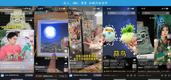 优质内容带来高质量互动,带动热点话题产生,催生二创等更多内容爆发、反哺好生意持续滚动。为激发文创品生意活力,平台结合地方文旅特色策划相关活动,联动38家文旅账号内容共创,覆盖商品数多达 52.5万。在平台、商家、用户的积极参与下,形成#哪里来的文创这么会整活、#本地人都想要的景区周边等多个高质量热点,话题最高登种草榜TOP 1、累计看后搜曝光量28.6万的好成绩,在五一假期不断掀起文创热。