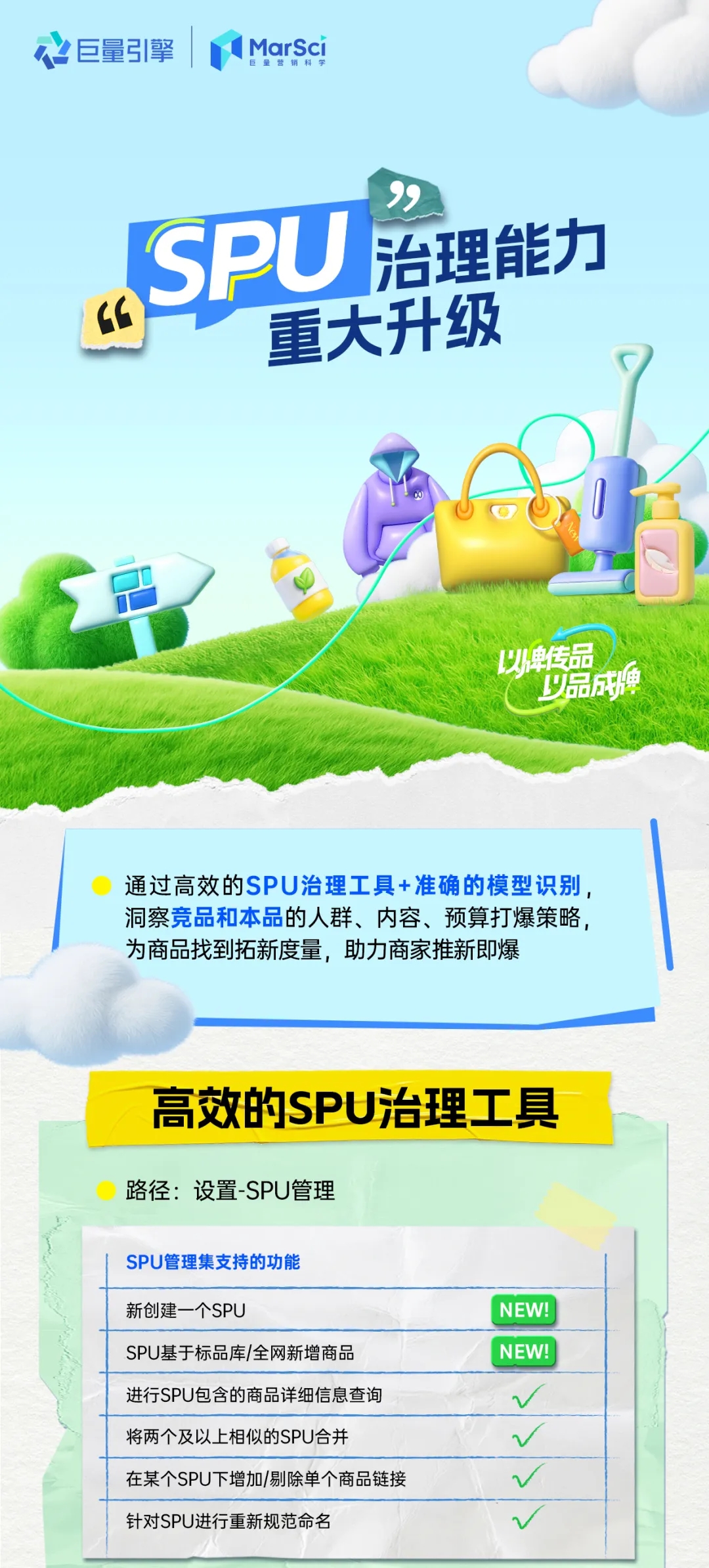 在消费者选择越发繁盛复杂的当下,推广新品既能帮助商家延续固有客群信赖,还能撬动全新客群关注,也能带动商家整体销售规模提升。全新升级的巨量云图-SPU5A,给到商家更精细的对标品集数据洞察,又追踪覆盖新品全生命周期,一站式帮助商家推爆新品,沉淀商品资产人群,筑牢生意稳健增长基础。现在,快和万千商家一起,借用巨量云图-SPU5A抢占618大促增长先机,撬动更多生意增量吧!
