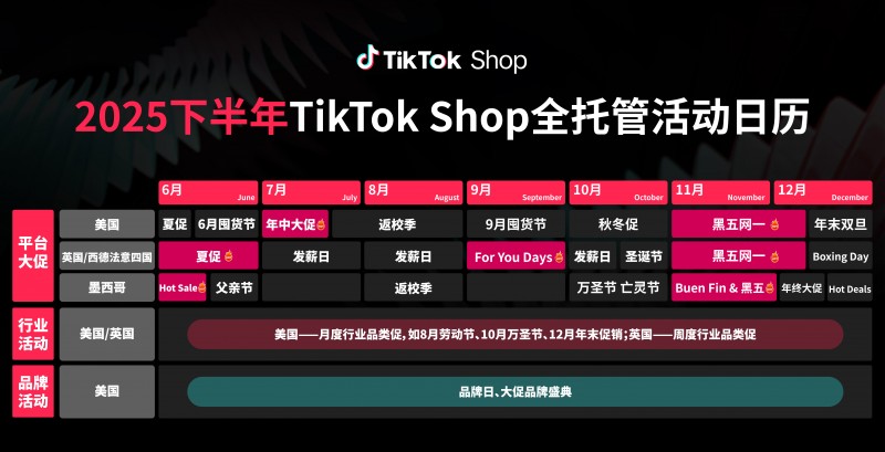 TikTok Shop下半年将推出夏季大促、黑五等全球营销活动,覆盖美国、欧洲、墨西哥等重点市场。TikTok Shop还推出了平台整体权益保障、新市场专属权益保障,全方位助力商家抢先布局下半年电商旺季。