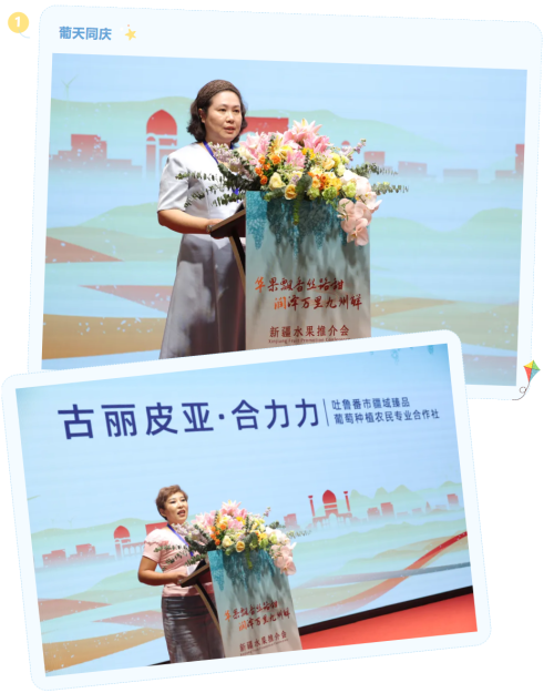 嘉兴海广兴市场经营管理有限公司总经理助理徐瑛女士及吐鲁番市疆域臻品葡萄种植农民专业合作社古丽皮亚·合力力女士,分别代表采购商和当地企业发言,表达了对深化合作的期待。