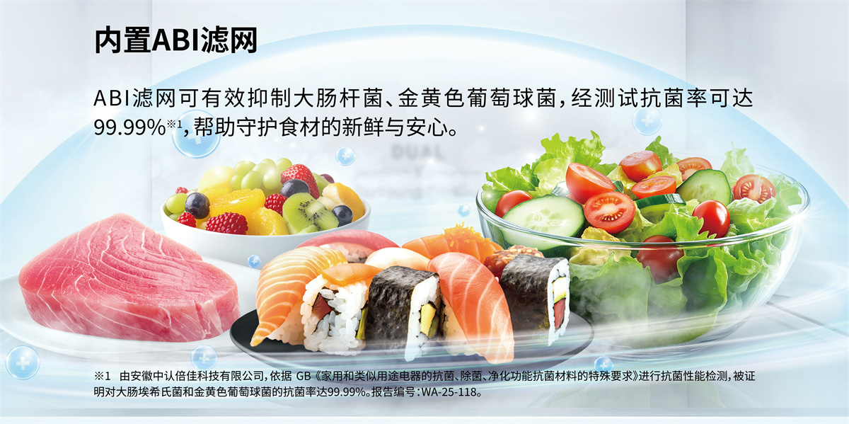ABI抗菌过滤网: 内置高效抗菌过滤网,抑制细菌滋生达99.99%,为食材健康存储提供双重保障。