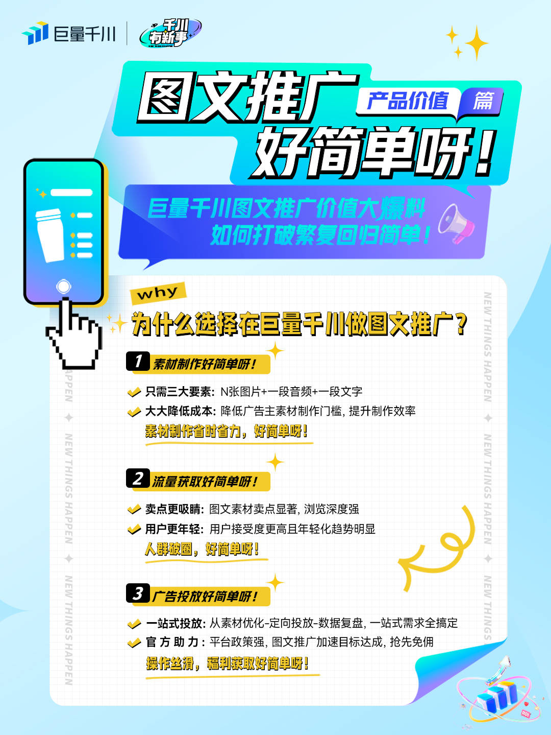 操作更便捷,投放更高效,图文推广已经成为不少商家争相布局,揽获生意增长的新方式!快快去巨量千川PC端用起来吧,切身感受生意增长“好简单呀”的喜悦吧!