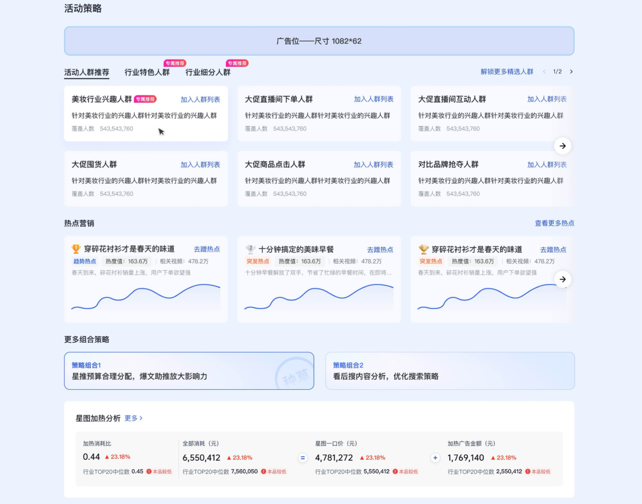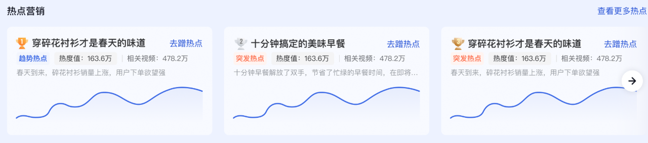 大促中,巨量云图可基于实时网络动态内容,分析用户内容偏好,在细分场景找到热点内容和大众情绪共鸣点,进而帮助商家搭乘“热点快车”,优化大促营销素材,借势打造爆款。同时,巨量云图还对行业热点进行洞察分析,让商家及时把握热点货品趋势,高效调整货盘布局,快速打造大促爆品。