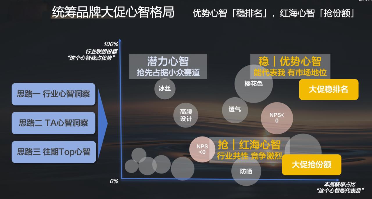 心智即指消费者心中对品牌的认知和态度。占领并持续提升用户心智,是商家生意实现可持续增长的必要条件。品牌心智建设离不开商家的长期运营,而大促活动则可帮助商家在短期内实现差异化心智突围,为生意爆发筑牢基础。
