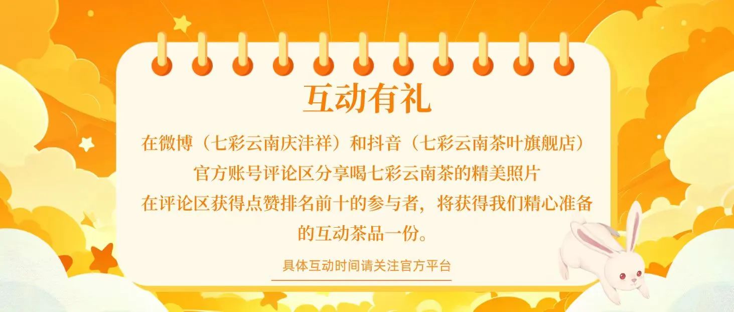 即日起天猫七彩云南庆沣祥旗舰店、京东七彩云南庆沣祥茶叶旗舰店、抖音七彩云南茶叶旗舰店将以全新的面貌与大家见面。届时,不仅有新品首发,还有丰富的优惠活动等你参与,敬请期待!