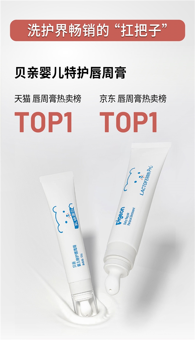 在婴儿洗护方面,贝亲桃叶家族婴儿洗护系列表现抢眼,经典“桃子水”再度蝉联天猫、京东婴儿爽身类目单品第一。贝亲桃叶系列强大的市场号召力也带动了该系列新品桃叶“冰冰霜”、“水水乳”的强势增长。此外,贝亲于去年推出的婴儿特护唇周膏拿下天猫、京东双平台热卖榜冠军。